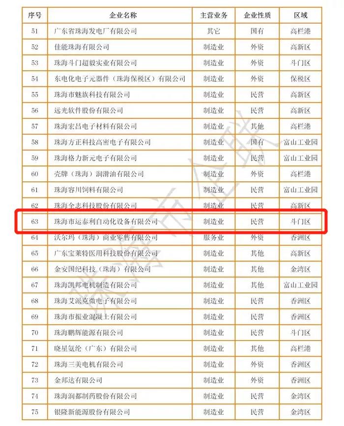 12月20日,珠海市企业与企业家联合会公布2021年珠海企业100强名单,yabo.com科技集团股份有限公司全资控股子公司--yabo.com运泰利凭借卓越的自主创新能力和行业领先水平,成功入选“2021 珠海民营企业100强”。